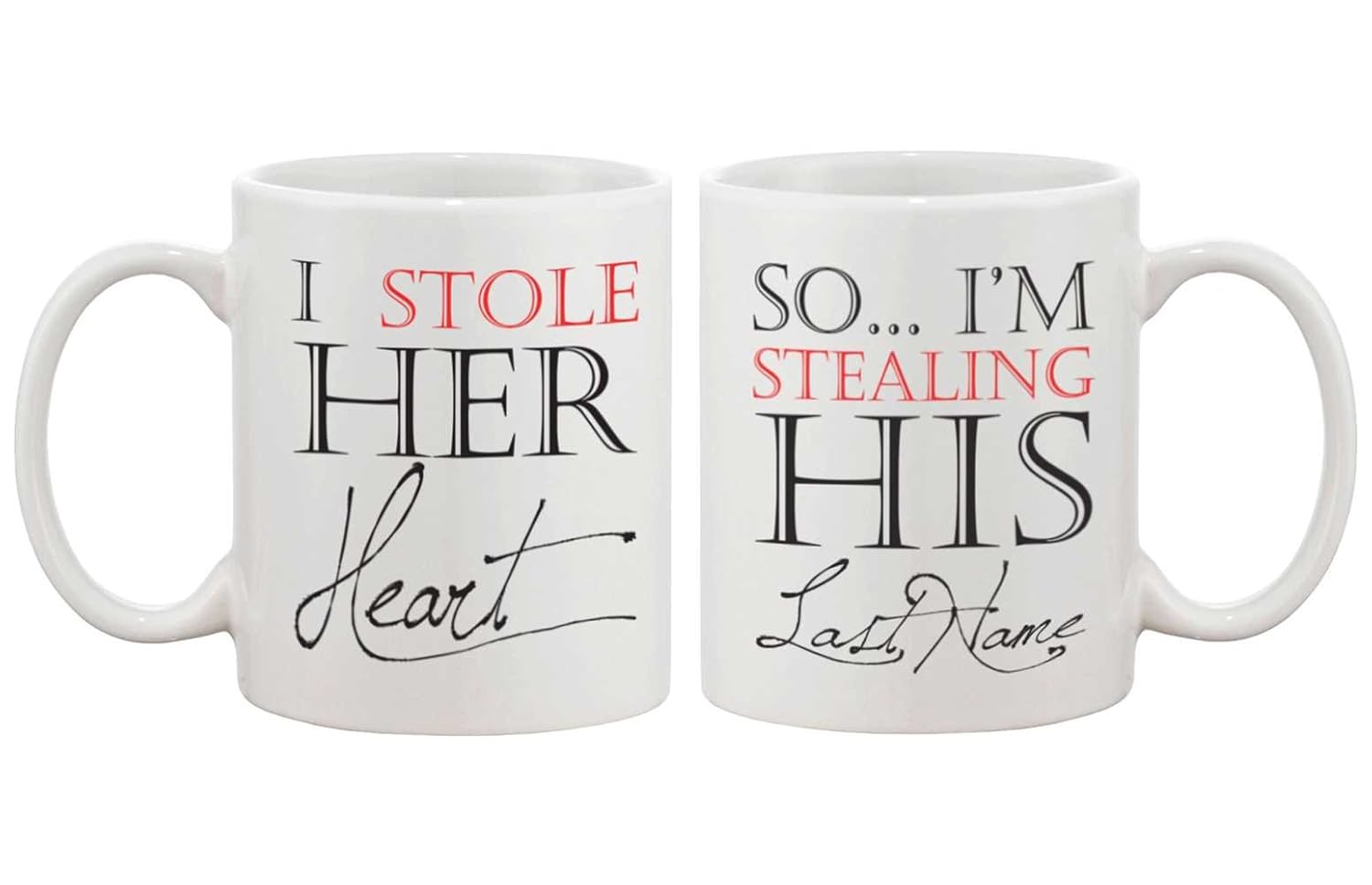 I Stole Her Heart, So I'm Stealing His Last Name Couple Mugs